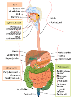 9-12 litraa ruoansulatusnesteitä matkaa ruoansulatuskanavassa (suolineste,